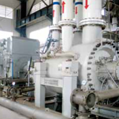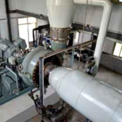 EGV系列水蒸氣離心壓縮機(jī)適用于MVR蒸發(fā)系統(tǒng)中,廣泛應(yīng)用于化學(xué)工業(yè)(蒸發(fā)、結(jié)晶、提純、濃縮)、廢水處理(含鹽廢水、含重金屬?gòu)U水等)、制藥(維生素等)、食品、添加劑工業(yè)(味精、大豆、蛋白質(zhì)乳液的蒸發(fā))、飲料工業(yè)(牛奶,果汁,乳清,糖溶液的蒸發(fā))等。 屬于單級(jí)、高速、單懸臂結(jié)構(gòu),壓縮機(jī)軸端密封采用碳環(huán)密封。該壓縮機(jī)葉輪和蝸殼安裝在高速齒輪箱上,與齒輪箱成為整體,由電機(jī)驅(qū)動(dòng)。機(jī)型涵蓋以下共計(jì)16個(gè)機(jī)型:28/31/35/40/45/50/56/63/71/80/90/100/112/125/140/160。采用系列化設(shè)計(jì)及高效的三元流開式葉輪,機(jī)殼采用鑄不銹鋼整體鑄造。 壓縮機(jī)為整體撬裝結(jié)構(gòu),單層布置,軸向進(jìn)氣,結(jié)構(gòu)緊湊,占地面積小,安裝周期短,易于維修,占用資源較少,便于安裝找正、維護(hù)。 油站兼具底座功能,潤(rùn)滑系統(tǒng)整體撬裝于底座上,節(jié)約管路、專用底座等成本;采用方便拆卸、維護(hù)的葉輪連接方式;帶有盤車結(jié)構(gòu),方便保養(yǎng)。該壓縮機(jī)可采用進(jìn)口導(dǎo)葉調(diào)節(jié)方式,滿足較寬的流量變化工況,調(diào)節(jié)范圍寬,達(dá)75%~105%。 該系列壓縮機(jī)采用成熟可靠的模型級(jí)和先進(jìn)的氣動(dòng)計(jì)算程序,壓縮機(jī)效率可達(dá)87%,經(jīng)機(jī)組現(xiàn)場(chǎng)運(yùn)行驗(yàn)證和評(píng)估,達(dá)到了國(guó)際先進(jìn)水平。